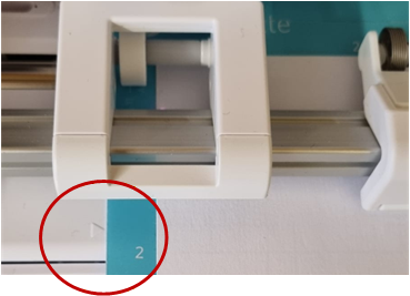 Wenn die Schneidematte genau linksbündig mit der Linie am Cameo 5 Plus eingezogen wird,