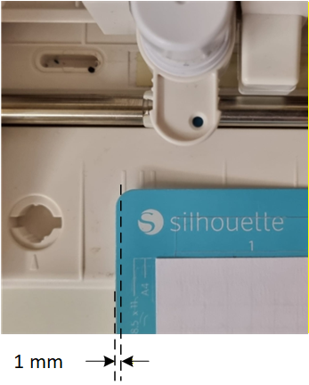 Wenn man die linke Seite der Schneidematte 1 mm weiter links als die linke Seite der Linie einspannt